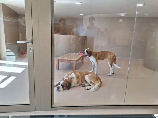 wir waren an diesem Tag dabei und konnten den Anghörigen ein wenig helfen, sich von ihren Sorgen abzulenken. Viele der Besucher haben sich an Bernhardiner erinnert, welche auf einem Bauernhof gelebt haben oder dass sie sogar selbst als Kind Kontakt mit Bernhardiner hatten. Es wurden viele Kindheitserinnerungen wieder wach und man hatte das Gefühl, daß einige ihre Probleme und Sorgen für ein paar Minuten vergessen konnten. Auch das Personal der Einrichtung hatte riesig viel Spaß bei der Aktion.